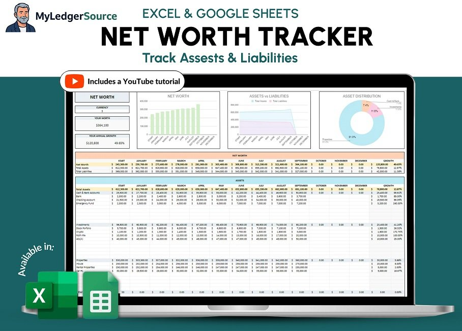✓ Excel spreadsheet of the Net Worth Tracker